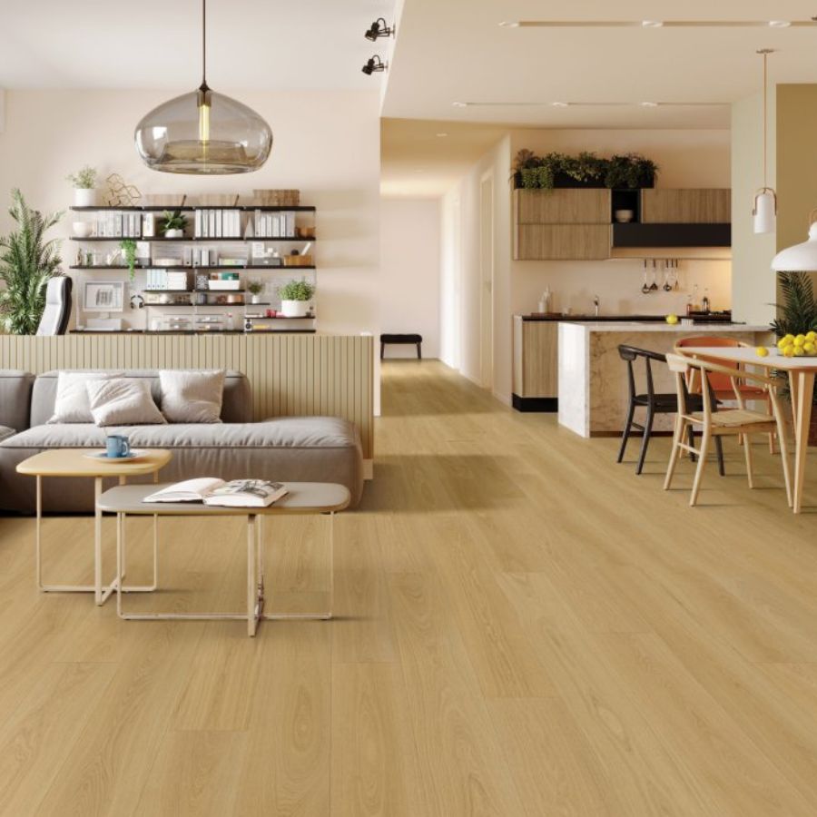Rozmery (mm): 228.6 x 1523 x 5, balenie = 2,44m2 Svetlý odtieň s jemnými mliečnymi tónmi vnáša do interiéru jemnú eleganciu a útulnosť.